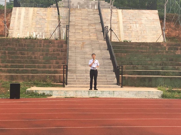 早晨6点50分,天色未明,同学们便早早起来,在升旗台前列队等候。七点整,升旗仪式正式开始。国旗护卫队队员步伐一致,齐头并进。当国歌奏响,五星红旗冉冉向着朝阳升起,在场所有同学庄严肃立,目光都聚集在五星红旗之上。升旗仪式结束后,由员工代表方雪丹同学上台发言。随后由曹瑞吉书记给员工讲话。