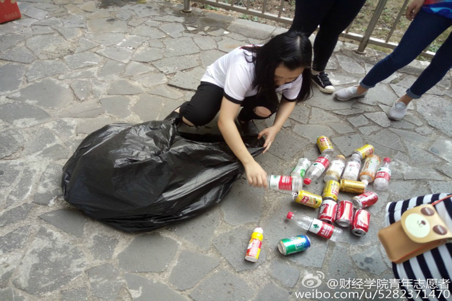 财经青协的负责人每年都会招募一批志愿者参加“回收行动”,招募完成后会对志愿者进行志愿活动的培训,让志愿者在培训中真正的了解到 “真正的快乐来自于帮助别人”,简单的举动可以帮助更多有需要的人。现今,我们的生活水平高了,各种塑料瓶装的饮料、纯净水随处可见并且深受我们的欢迎,喝完饮料后多数人都会把瓶子丢弃,这样的行为会破坏环境,造成资源的浪费。因此,财经青协组织了“回收废旧塑料瓶”的活动,希望通过志愿者的行动可以减少资源的浪费并且为光明链接活动募集资金。