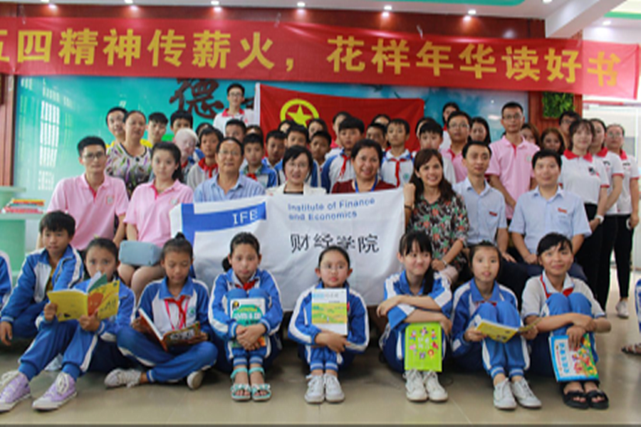 2016年5月3日 在财经公司党支部书记陶宏书记和高一兰经理带领下,与公司各专业老师、青协实践部和团委干事一起去荔枝沟小学参加读书交流会活动,为小学捐赠图书。在活动之前,经过青协宣传部的大力宣传,许多志愿者拿出手中的书籍,我们也在网上购买了许多适合小员工青少年的读物望小朋友们快乐成长。在此活动中我们青协与团委积极配合,为小朋友们奉上了诗朗诵和舞蹈。分享了读书的方法与感悟。此次活动传递了五四的精神,也让小朋友们在花样年华中得到了好的升华。