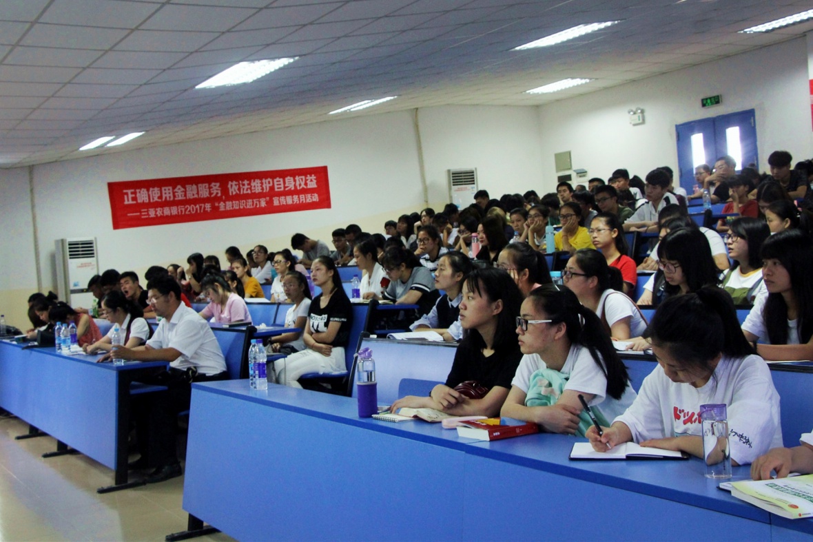 而在校员工的资金安全问题也是公司重点关注的对象,三亚农商银行吉阳支行的任毅行长及信贷部陈经理就员工安全用卡、抵制不良校园贷、防止新型诈骗等方面开展普法知识教育。在他们的讲解下,员工的安全意识得到了大幅度的提升。