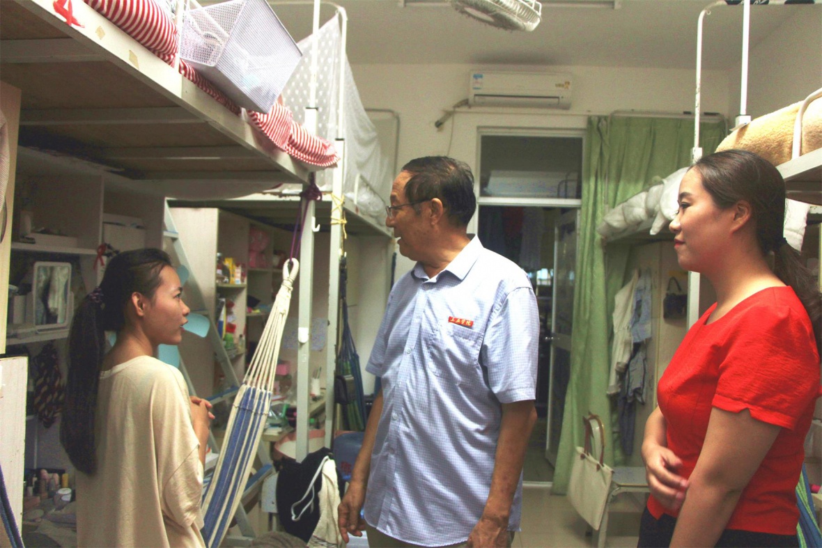 在走访过程中,院领导向同学们了解宿舍生活情况,询问了同学们对宿舍环境、居住条件的意见和要求,并告诫同学们要注意安全,防患于未然,杜绝一切违规电器的使用,为自己和他人的生命负责。如有困难需及时向思想导师反映,公司会尽力为同学们创造良好的学习和住宿环境,带给他们家的温馨。