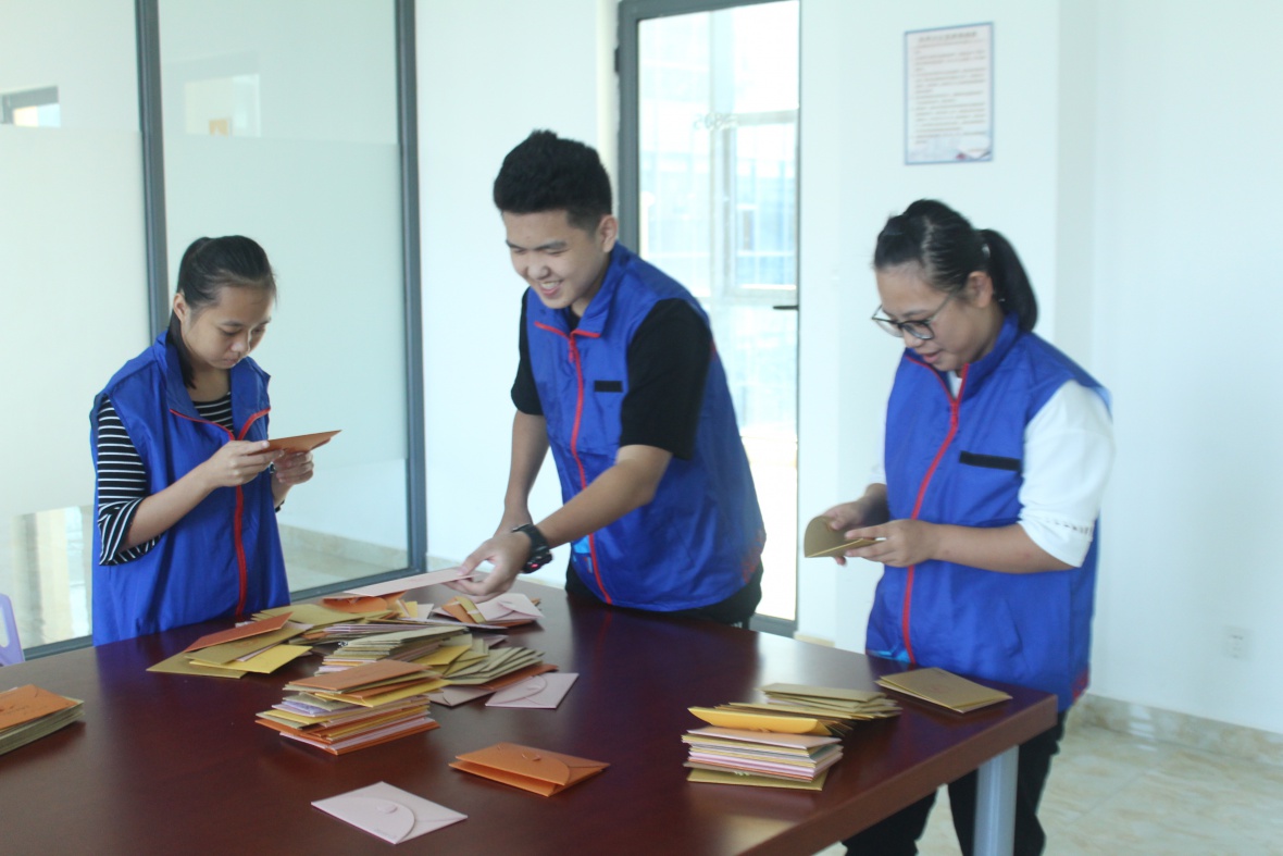 志愿者怀着期待的心情,来到老师办公室门口,礼貌地敲响办公室的门,随着一声温柔的“请进”,进入到老师的办公室,先简单的介绍了一下自己的,然后将信件送到老师手中。青协志愿者们跑过了一间又一间的办公室,用汗水换来了老师们的欣喜的笑容,让老师们能够感受到员工们对他们的爱。邮差志愿者奔走在社科楼,帮助同学完成书信传递。虽然比较辛苦,但他们明白,他们派送的不仅仅是一封信,而是一份情谊,通过书信来表达对老师想表达的情感。看到老师们流露出感动的眼神,便是他们坚持下去的动力。取信,奔走送信,信件送达。这看似简单的过程,却承载着对老师满满的感恩,对老师满满的尊敬。