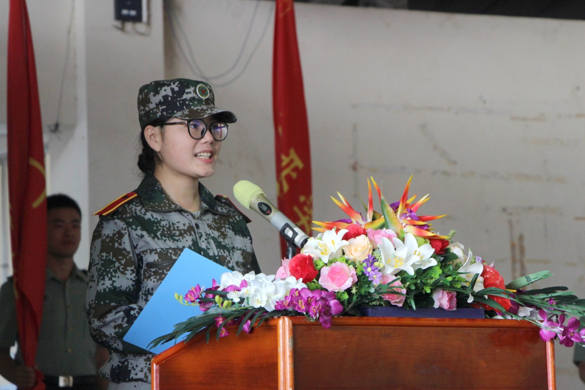 在听完洪副董事长发表完讲话后,教官代表有感而发,希望通过军训,培养积极向上、奋发进取的精神风貌,养成严明的组织纪律观念,激发同学们的爱国热情。他相信在全体教官科学施训下,同学们能够听从指挥、严守纪律、刻苦训练、顽强拼搏,一定能高标准、高质量地完成军训任务。