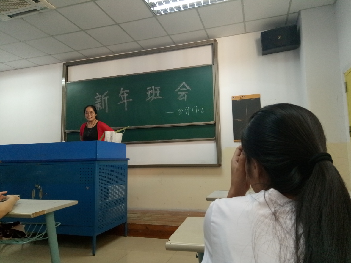 班会上辅导员蛐蛐老师首先给我们同学带来了老师自已家乡自做的特产,用糯米和红薯做的干片,很好吃呢。蛐蛐老师让班长作为带头人先为同学们讲了她过年时学会了劈柴,而且劈两根柴花了半个小时,接着陆续续续的同学都纷纷起来说了自已过年时的趣事。有的同学在过年的时候去做了兼职,有的同学还去养老院为老人服务,还有的去海边捕鱼等等。