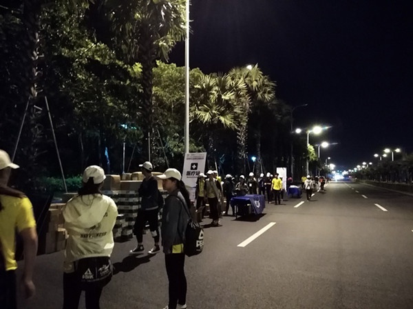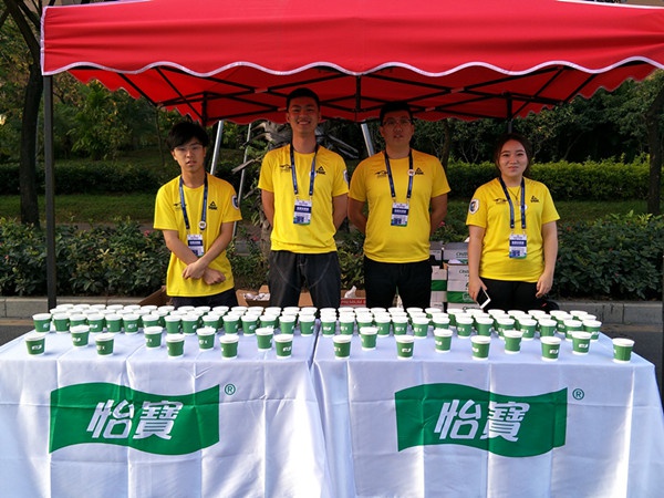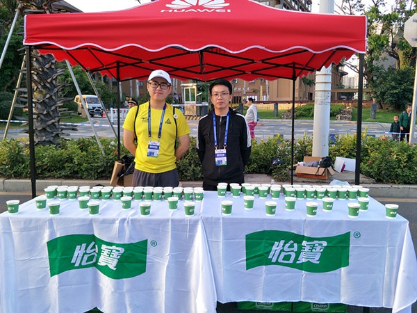 凌晨3点50分,公司59名员工在带队老师蒋正喜的带领下准时在喷泉广场集合,坐上大巴车前往比赛现场参与志愿者服务工作。到达现场之后开始紧锣密鼓的布置,同学们搬桌子、撑帐篷、摆饮料等等,比赛过程中同学们不仅为运动员们提供饮料攻击,还为运动员们喝彩。