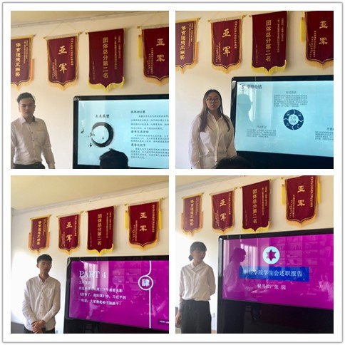 随后述职的员工会副主席范一同学,提到在上学期他所指挥的自律文明月和寝室文化节活动,提高了同学们的自律意识和宿舍安全意识; FEBA篮球赛,激发了同学们的体育热情。同时,范同学表示,作为文案类部门出身,对举办活动的经验不足,偶尔临场反应不及时,并且有些活动后续跟进不够及时。因此,范同学认为,要提前想好活动应急方案,用来对应活动中出现的突发情况。述职的最后,范同学希望这个她以视为家的员工会可以越来越好。