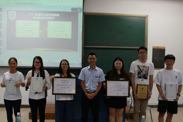 接着就是本次活动的重点——颁奖典礼了,本次颁布的奖项有2016-2017年度书福奖学金,2016-2017年度国家励志奖学金,2016-2017年度学习优秀一等奖、二等奖、三等奖,2016-2017年度学习进步奖,2016-2017年度创新实践二等奖,2016-2017年度优秀团学干部,2017-2018学年员工工作先进个人,全国、全省活力团支部揭牌,2017全国活力团支部遴选先进个人、突出贡献奖、优秀助理,班长团支书聘书颁发,随后就是由各班班长团支书给各班的班委颁发聘书,获奖人数共计百余位同学,在大家的欢乐与掌声中,本次颁奖活动宣布结束。