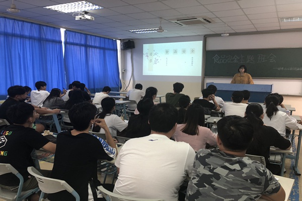 为了同学们可以正确选择干净卫生的食品。财管1603班副班长汪楠同学在2018年5月24日下午4点钟在5东402教室给同学们进行了一次关于“食品安全”主题的教育班会。站在同学们安全的角度,汪楠细心认真的告诫同学们有关食品安全应该注意的问题。尽量减少在路边摊食用的次数,多吃健康的、卫生的食物。多吃瓜果蔬菜等有营养的食品。食品安全关系到每一位同学的健康,甚至是生命安全。希望大家有所警惕,不容忽视