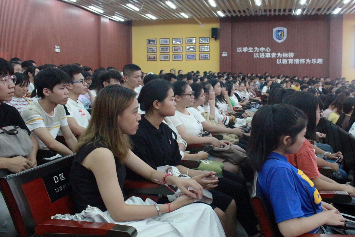 图为新生认真听讲
