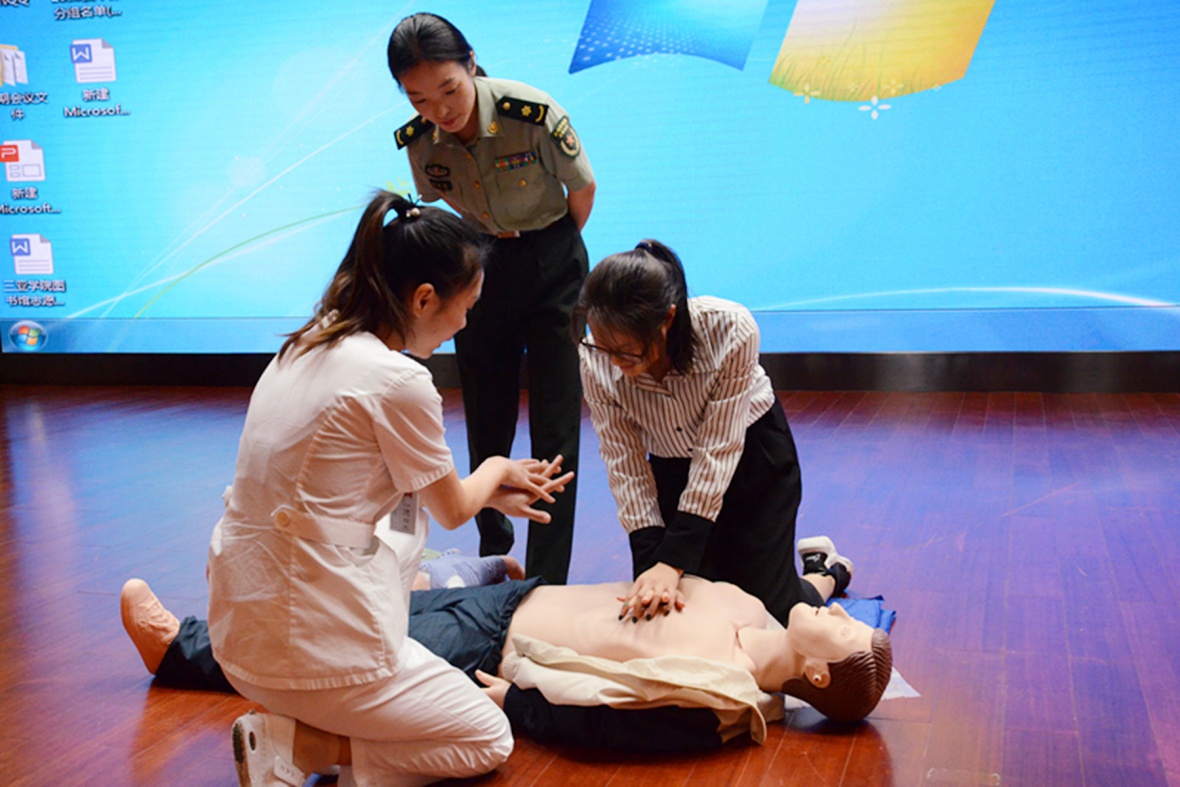 讲座在同学们的掌声中开始。整个过程中,同学们全神贯注地听着褚加静医生的讲话。随着幻灯片的播放和褚医生的不断讲解,同学们时而眉头紧皱、时而点头赞同,整个千人礼堂的同学都在跟随着褚加静医生的思路而思考着,台上还放置了假人为同学们做急救示范,以便同学们更直观的感受与学习。
