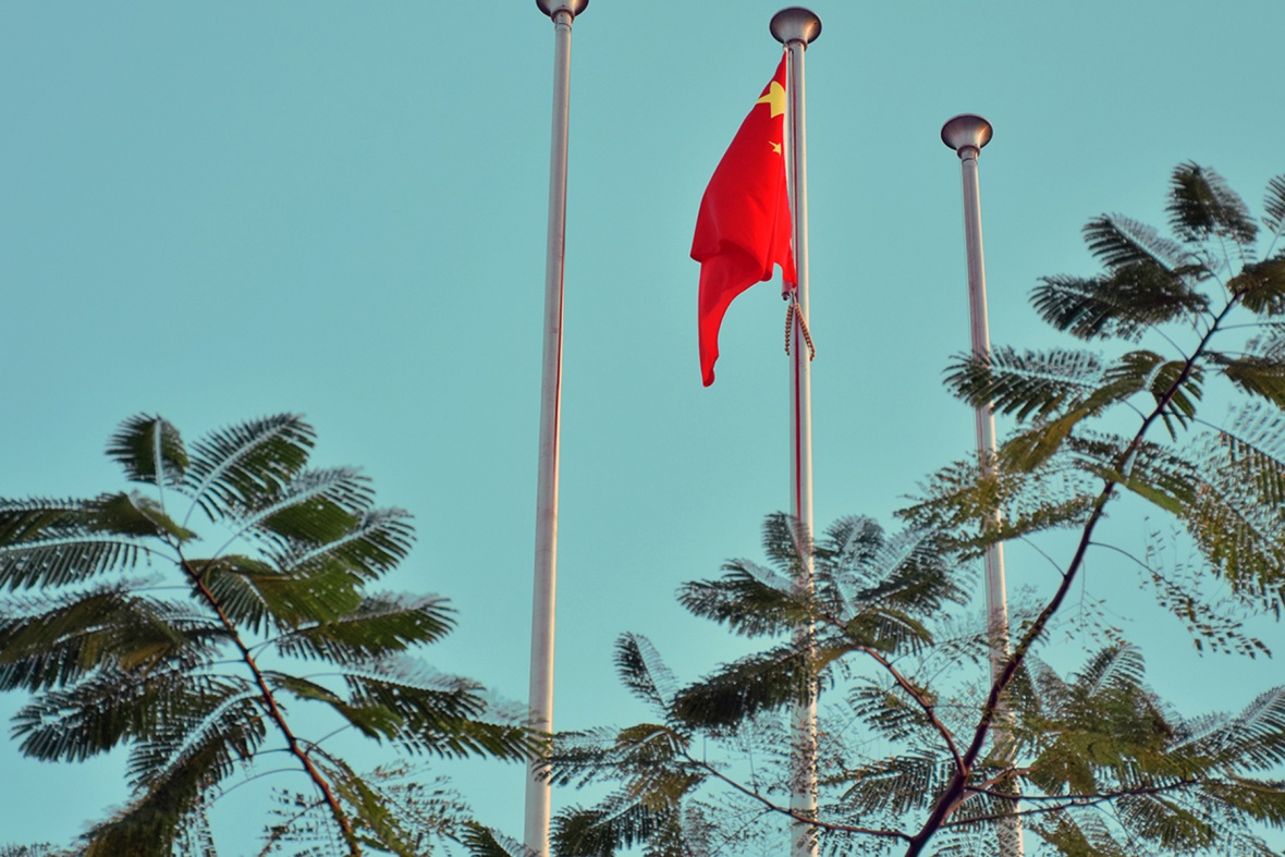 仪式开始,五星红旗在全体师生的注视下冉冉升起。红旗,鲜艳而美丽,每个人的心中都怀着对祖国崇高的敬意和无比的自豪感。伴随着国歌结束,红旗迎风飘动,耀眼的金色五星是神圣的象征。