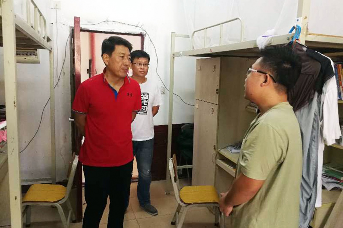 院领导们在宿舍楼下集合后,便开始进行走访。在走访过程中,院领导们向留宿同学了解宿舍生活情况,询问了同学们对宿舍环境、居住条件的意见和要求以及留宿的原因,并告诫同学们假期在宿舍一定要注意安全,防患于未然,杜绝一切违规电器的使用,为自己和他人的生命负责。如果遇到困难,要及时向宿管和生活老师反映报告。院领导也表示,公司会尽力为同学们创造良好的学习和住宿环境,带给他们家的温馨。