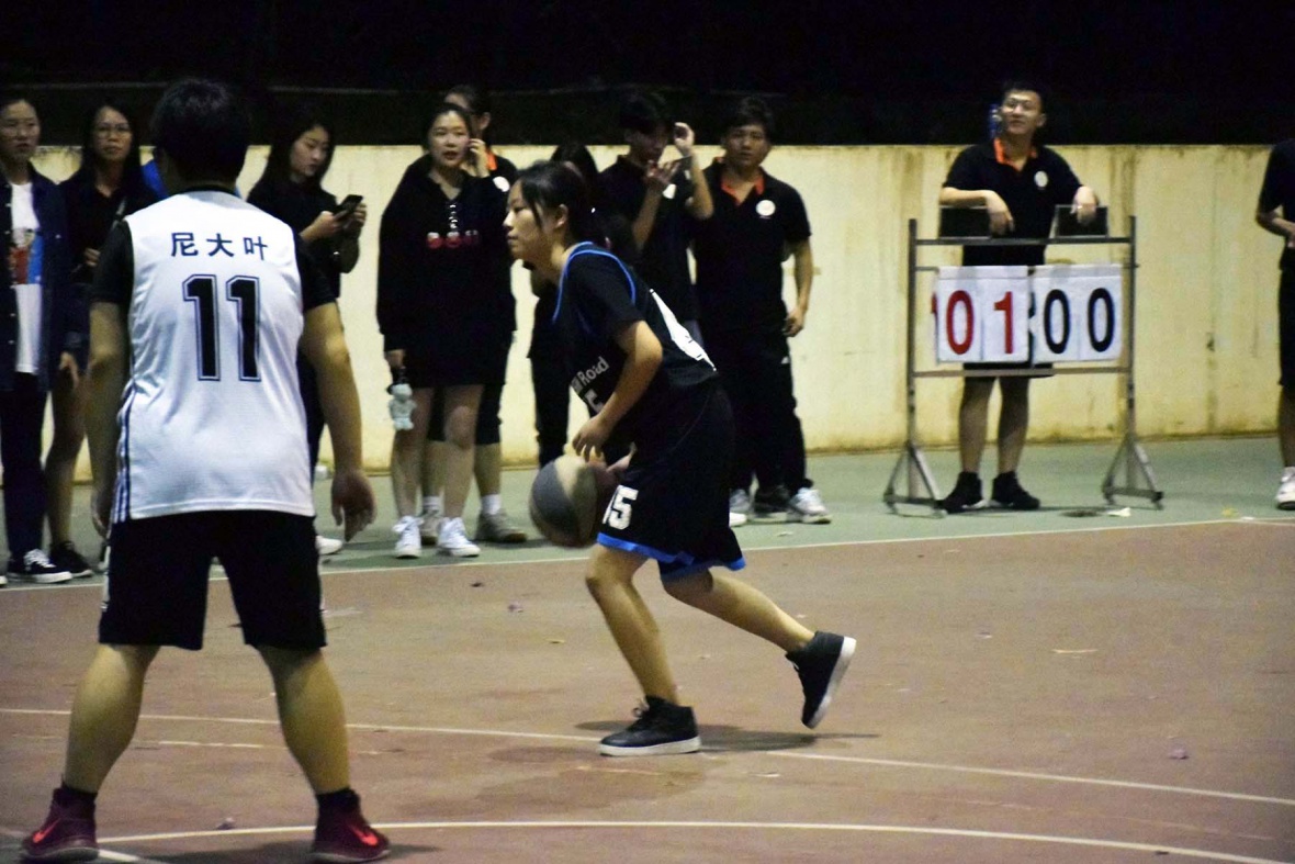 首先进行的是女篮比赛。比赛开始之前,双方运动员在紧张地做着热身运动。现场气氛火爆,队员在灯光下,舞动着矫健的身姿。传球、上篮、得分一气呵成,每一次进球都能引爆全场。经过激烈的角逐厮杀,最终必一运动以12:1的比分战胜丝路商公司,展现了巾帼不让须眉的风采。