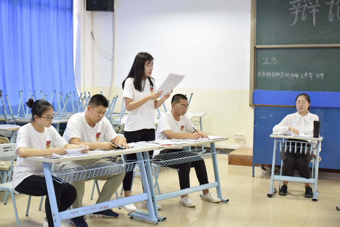 首先出场的是国贸1802班与会计1805班,他们的辩题是“开放式的管理对老员工是利大于弊还是弊大于利”。从驳论,对辩,盘问等环节中可以看出,双方辩手们在赛前都已做好充足的准备。随着比赛的持续进行,正反方的唇枪舌剑让现场充满了火药味。整场比赛紧张而激烈,有序而不失活力。