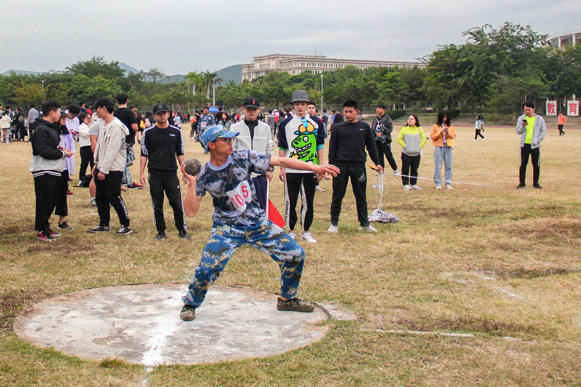 比赛开始前,选手们进行热身,慢跑,俯卧撑,拉腿,想要一展风采。比赛正式开始,唐波同学缓缓举起铅球,扭转身体,下蹲蓄力猛的推出,沉重的铅球在空中划过一道抛物线后落地。最终,经过三轮的角逐,唐波同学以8米34的成绩位列第六名。场边观看的必一运动的同学响起了掌声。