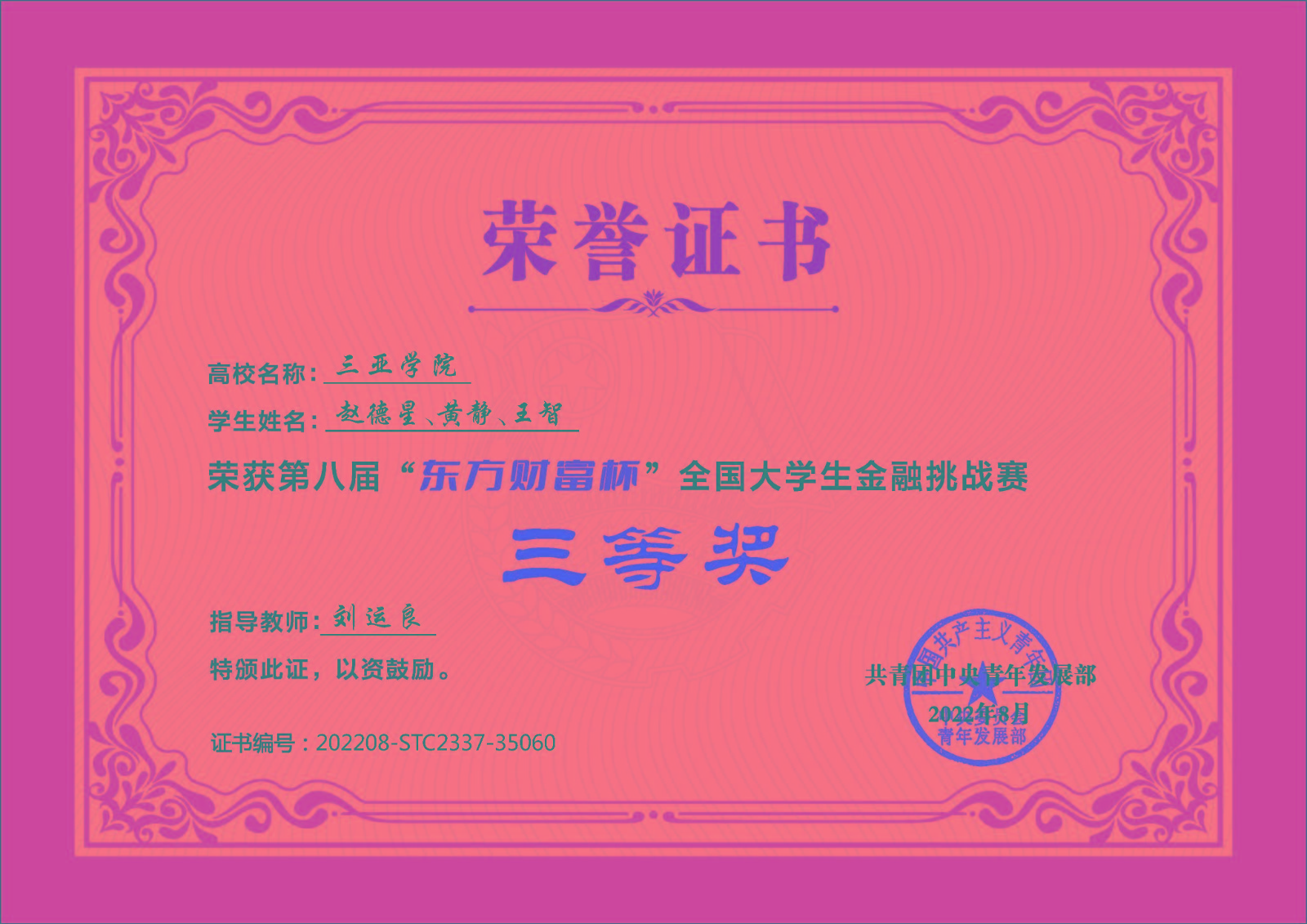 在今年八月落下帷幕的第八届“东方财富杯”全国老员工金融精英挑战赛中,公司经济与金融专业捷报频传。“东方财富杯”全国老员工金融挑战赛是面向全国老员工群体打造的具有高知名度、高含金量及广泛社会影响力的金融创新实践大赛,在省赛阶段,公司多支队伍荣获省级二等奖、省级三等奖,在国赛阶段,公司队伍再接再厉,荣获三项国家三等奖。