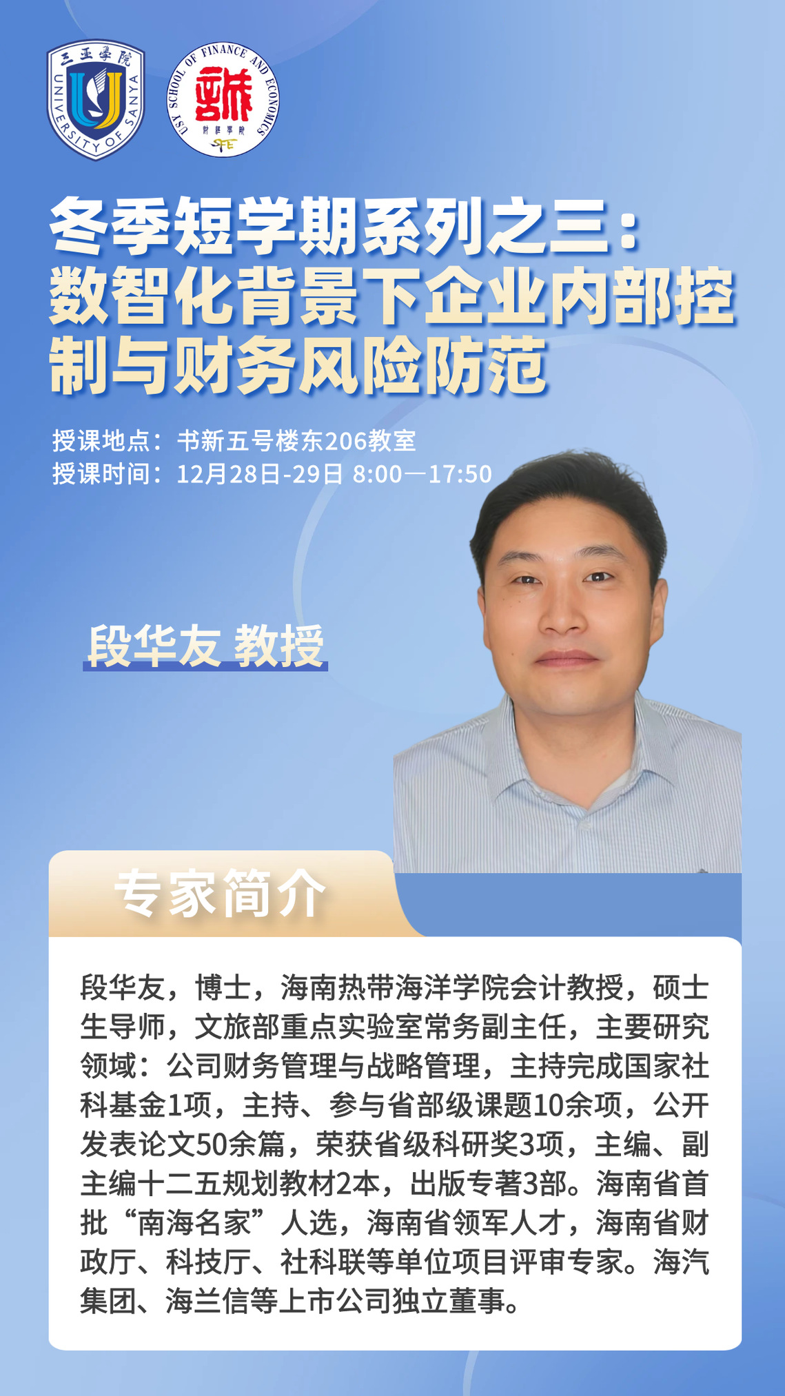 冬季短学期系列之三:数智化背景下企业内部控制与财务风险防范